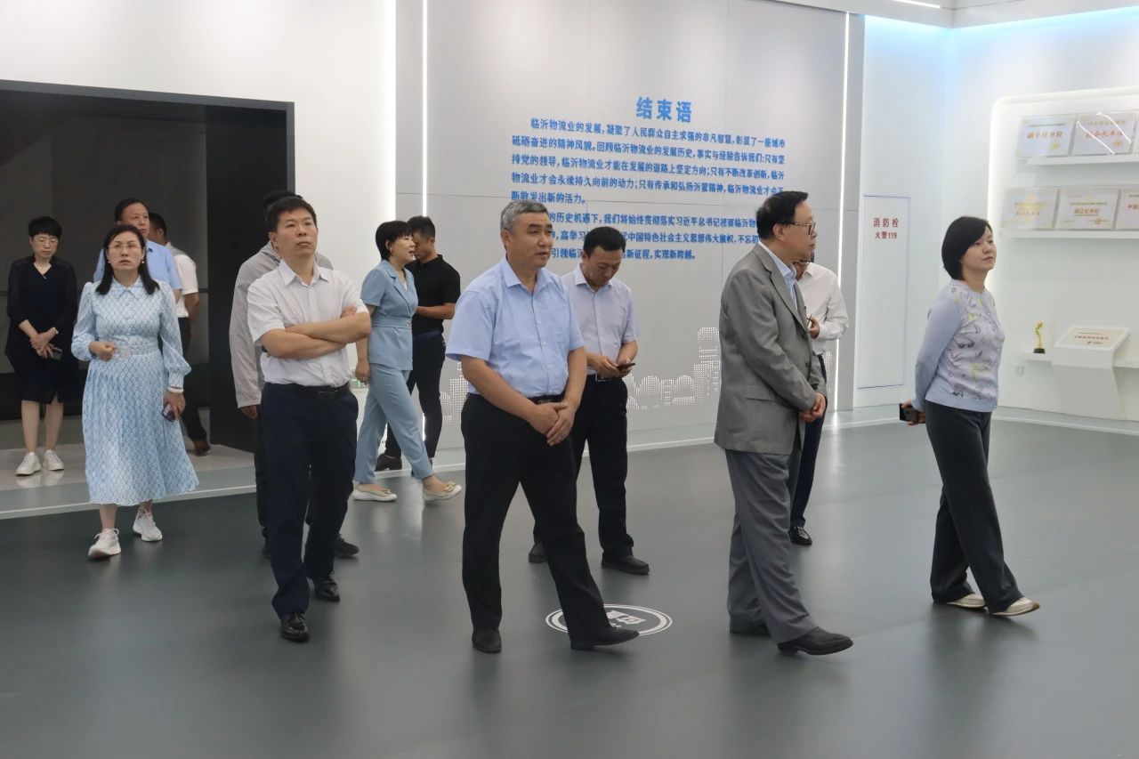 調(diào)研團(tuán)參觀了中國物流之都展覽館。集團(tuán)黨委副書記、董事長許大勇為調(diào)研團(tuán)介紹了臨沂商貿(mào)服務(wù)型國家物流樞紐順和國際智慧物流園項目,闡述了順和集團(tuán)積極響應(yīng)習(xí)近平總書記“向現(xiàn)代物流發(fā)展”的重要指示,在物流科技創(chuàng)新、物流行業(yè)管理技術(shù)進(jìn)步方面做出的努力,并向調(diào)研團(tuán)表達(dá)了順和集團(tuán)致力于整合資源,推動多方合作,提高物流效率,促進(jìn)物流行業(yè)降本增效,助力臨沂商貿(mào)物流轉(zhuǎn)型升級的發(fā)展理念。